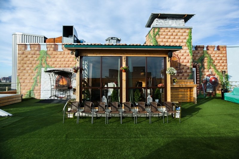 Необычный банный комплекс «На высоте» распложен на крыше 20-этажного дома и представляет собой пентхаус с русской, японской баней и купелью.