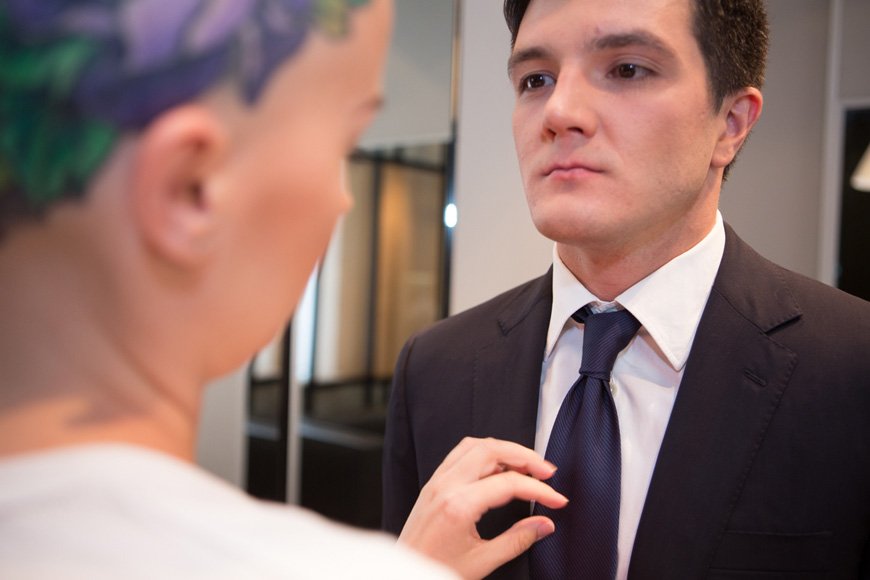 В принципе, сегодняшняя мода очень лояльна ко всякого рода экспериментам. Например, сейчас во многих коллекциях можно обнаружить фантастические галстукиноски, будто бы вязаные из толстых шелковых жгутов. Для фотосессии про «простой двойной» узел мы использовали такой галстук из коллекции Tom Ford. Еще один классный тренд – галстуки из необычных материалов. Такой от Saint Laurent, узкий из черной кожи, мы сфотографировали отдельно чтобы продемонстрировать, как стильный, не вписывающийся в традиционные рамки аксессуар может преобразить строгий классический костюм.
