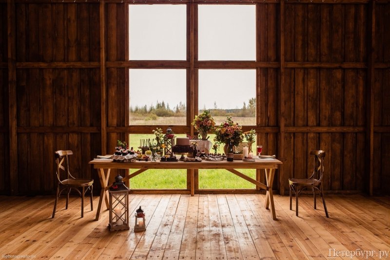 Наталья: «Мы решили сделать что-то, чего еще нет в Петербурге, и новая площадка оказалась очень востребованной. Гостям нравится деревянный амбар в экостиле, чистое ухоженное поле вокруг, натуральное дерево, огромная веранда и беседка для выездных регистраций».