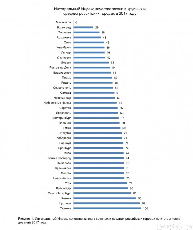 В прошлом году городами-лидерами стали Томск и Грозный. Тюмень пока не уступает первенства, занимая первое место уже несколько лет подряд. Однако и у Санкт-Петербурга есть все шансы попасть в ТОП-3 городов по качеству жизни.