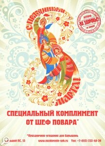 По исконно русским традициям праздники нужно отмечать, причем с размахом. 8 марта — это не только международный женский день, но и праздник весны и красоты. В эту субботу прекрасную половину человечества ожидают приятные комплименты в ресторане «На здоровье!» по адресу Большой проспект П. С. 13.