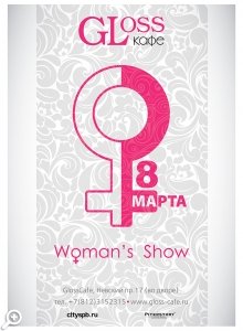 8 марта Gloss café распахнет свои двери для самого весеннего праздника — отмечаем Международный Женский день. В субботу на Невском проспекте 17 всех гостей ждет по-настоящему освежающее и яркое шоу, а прекрасные девушки не останутся без комплиментов от ресторана. Весь вечер модную и взыскательную публику Северной столицы будут радовать своими сетами лучшие Dj города, так что на месте усидеть не получится. Зажигательная вечеринка, жаркие танцы и самые красивые люди города в этот вечер будут в Gloss café.