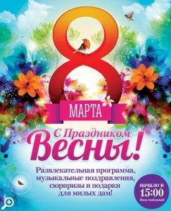 В Международный женский день торгово-развлекательные комплексы Санкт-Петербурга порадуют прекрасную половину человечества яркими праздничными программами. Девушек в этот день встретят зажигательными мелодиями музыкальные коллективы, весеннее настроение поддержат танцевальные мастер-классы, интерактивные площадки стилистов и студии красоты. И, конечно же, всех посетителей ждут веселые конкурсы, призы и подарки!
