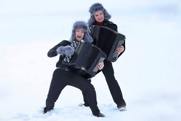 Лауреаты международных конкурсов Александр Сироткин (баян) и Андрей Битюцких (баян).