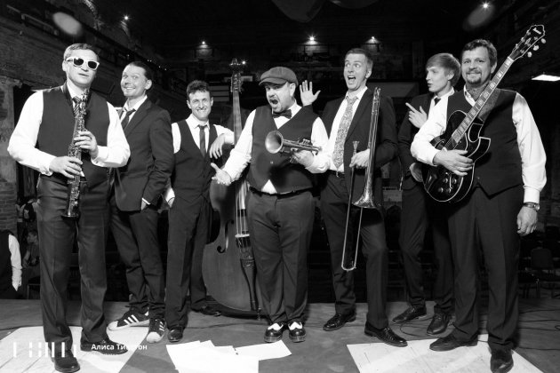 Фронтмен коллектива Вова Чё Морале – поющий трубач, который в совершенстве владеет искусством скэта (вокальной импровизацией), виртуозно совмещает соло трубы и множество вокальных техник, в том числе тот самый гроулинг, прародителем которого является Луи Армстронг, и в лучших stand up традициях прошлых лет легко и непринужденно ведет концерт.