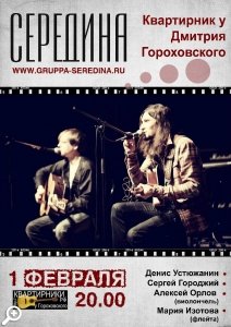 1 февраля в Санкт-Петербурге пройдет квартирник группы «Середина» у Дмитрия Гороховского. Если вы соскучились по акустике и по живым инструментам – добро по жаловать на вечер.