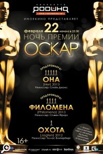 Проект «ИНОЕКИНО» продолжает показы в кинотеатре «Родина» ночью посвященной предстоящей премии Оскар, где будут представлены три фильма-номинанта: «Она», «Филомена» и «Охота». Причем «Она» Спайка Джонса и «Филомена» Стивена Фрирза пройдут в качестве уникальных предпремьерных показов — зритель увидит эти картины за неделю до широкого проката в России.