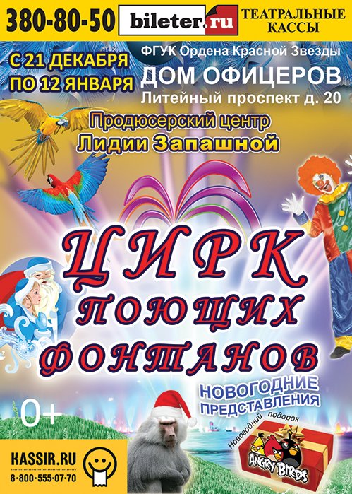 С 21 декабря по 12 января город на Неве ожидает необыкновенное, волшебное цирковое шоу. Это уникальное представление, не имеющее аналогов в Петербурге: впервые на сцене можно будет увидеть «живые», поющие фонтаны.