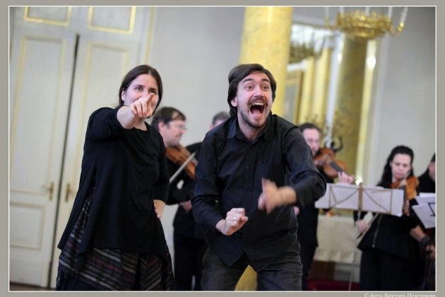 Венцом дня в 19-00 станет первое исполнение школьной драмы «Комедия о Навуходоносоре царе, о теле злате и о триех отроцех, в пещи не сожженных» Симеона Полоцкого – богослова, драматурга, придворного поэта, астролога и наставника детей царя Алексея Михайловича. Постановщики Данила Ведерников и Андрей Решетин. Исполнители – «Барочный балет Анджолини» и «Солисты Екатерины Великой», костюмы Лилии Киселенко.