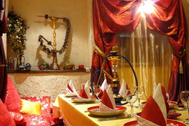 При входе в зал можно увидеть барную стойку, выполненную в виде минарета. «Ханская комната» рассчитана на 20 клиентов, здесь можно с комфортом отдохнуть на атласных подушках и почувствовать себя настоящим персидским властителем. В меню ресторана входят лучшие блюда восточной кухни. Здесь посетители могут заказать оригинальные закуски — запеченные баклажаны или тончайшие лепешки с начинкой, вкуснейшие салаты, супы, различные виды шашлыка или же плов. Достойным завершением трапезы станет чай с горными травами, вареньем и другими сладостями. В винной карте можно найти как традиционные напитки, так и домашние вина.